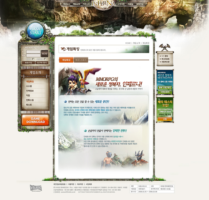 Client : Ymir Entertainment Type : Web site Period : 2007.10 ~ 2008.01