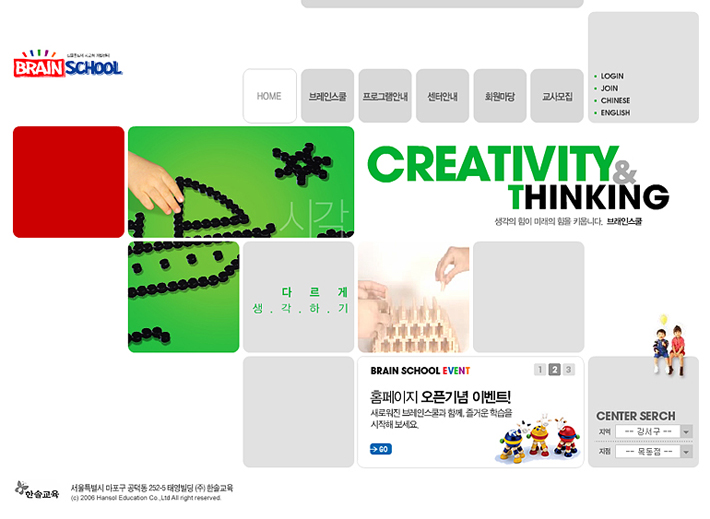 Client : Hansol Type : Web site Period : 2005.11 ~ 2006.01 URL : www.brainschool.co.kr