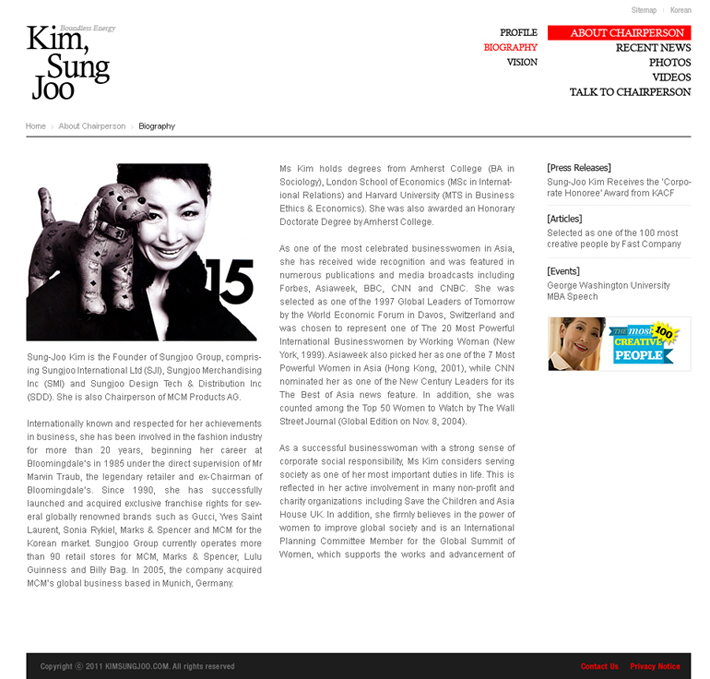 Client : SUNGJOO Group Type : Web site Period : 2011.02 URL : www.kimsungjoo.com