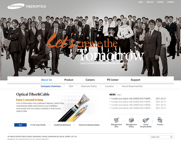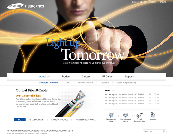 Client : SAMSUNG Fiberoptics Type : Web site / Renewal Period : 2011.05 URL : www.samsungfiberoptics.com